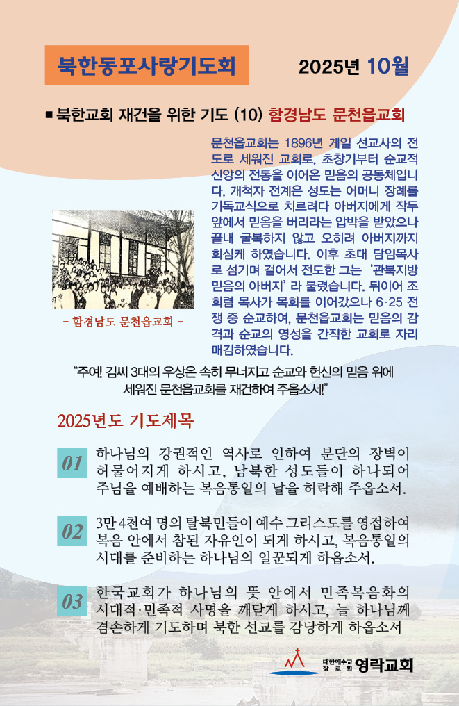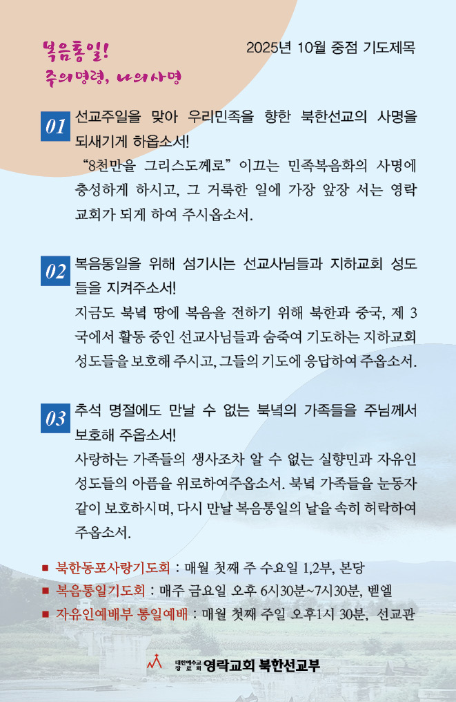 북한동포사랑기도회 2025년 10월 기도카드