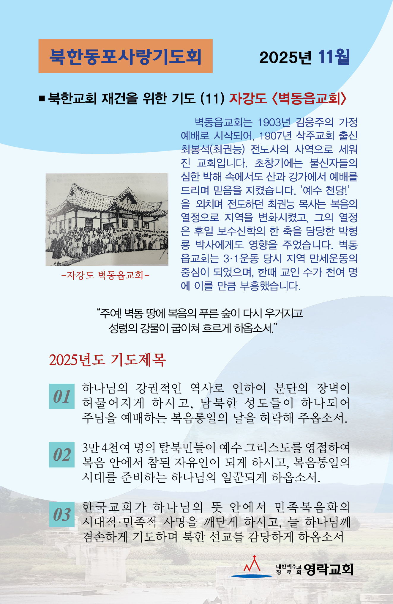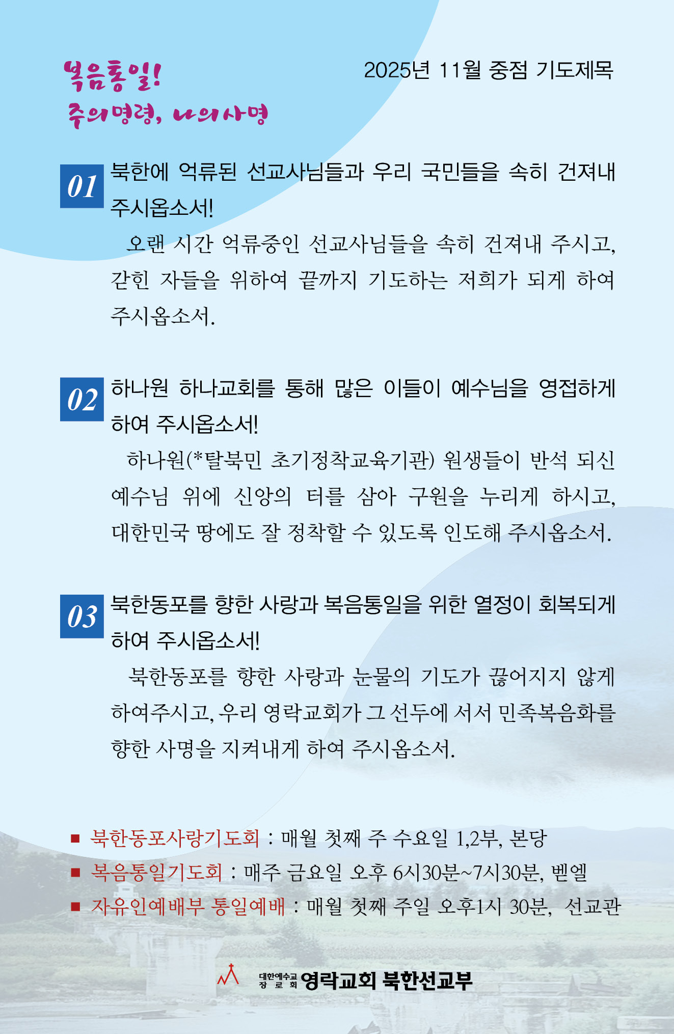 북한동포사랑기도회 2025년 11월 기도카드