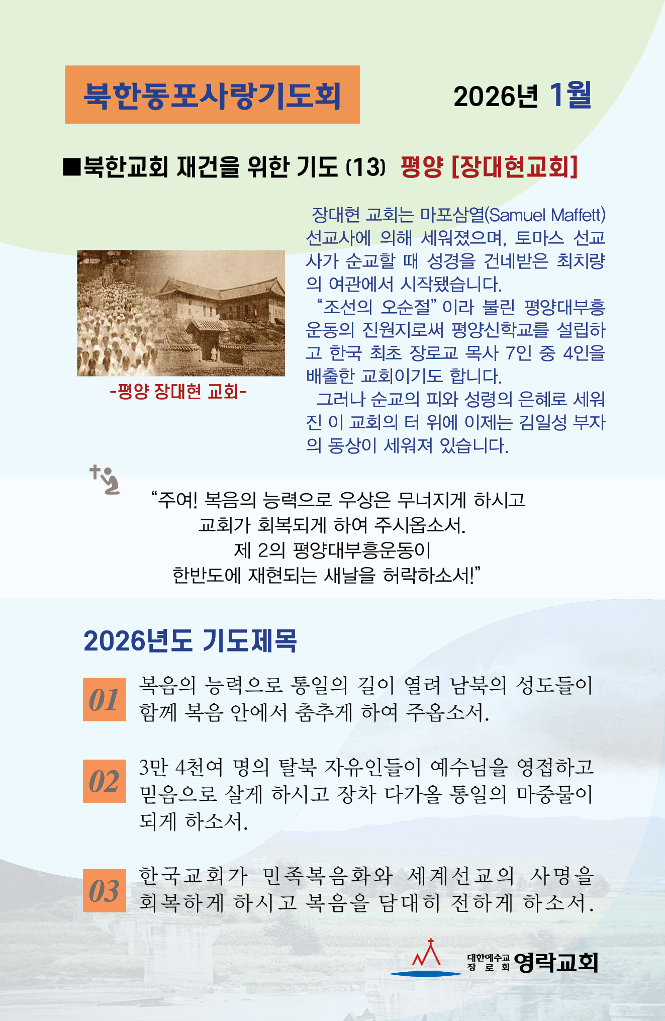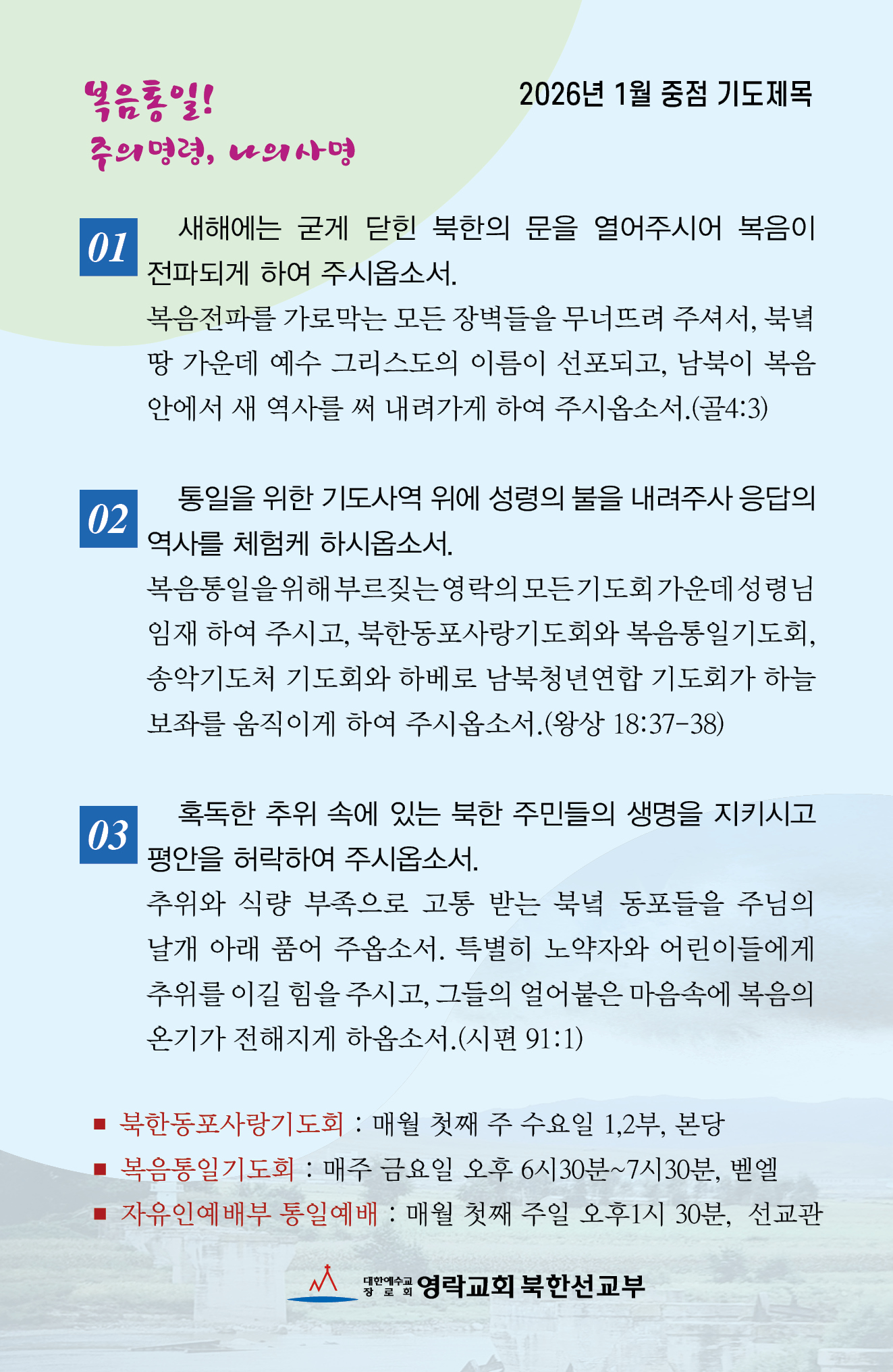 북한동포사랑기도회 2026년 1월 기도카드