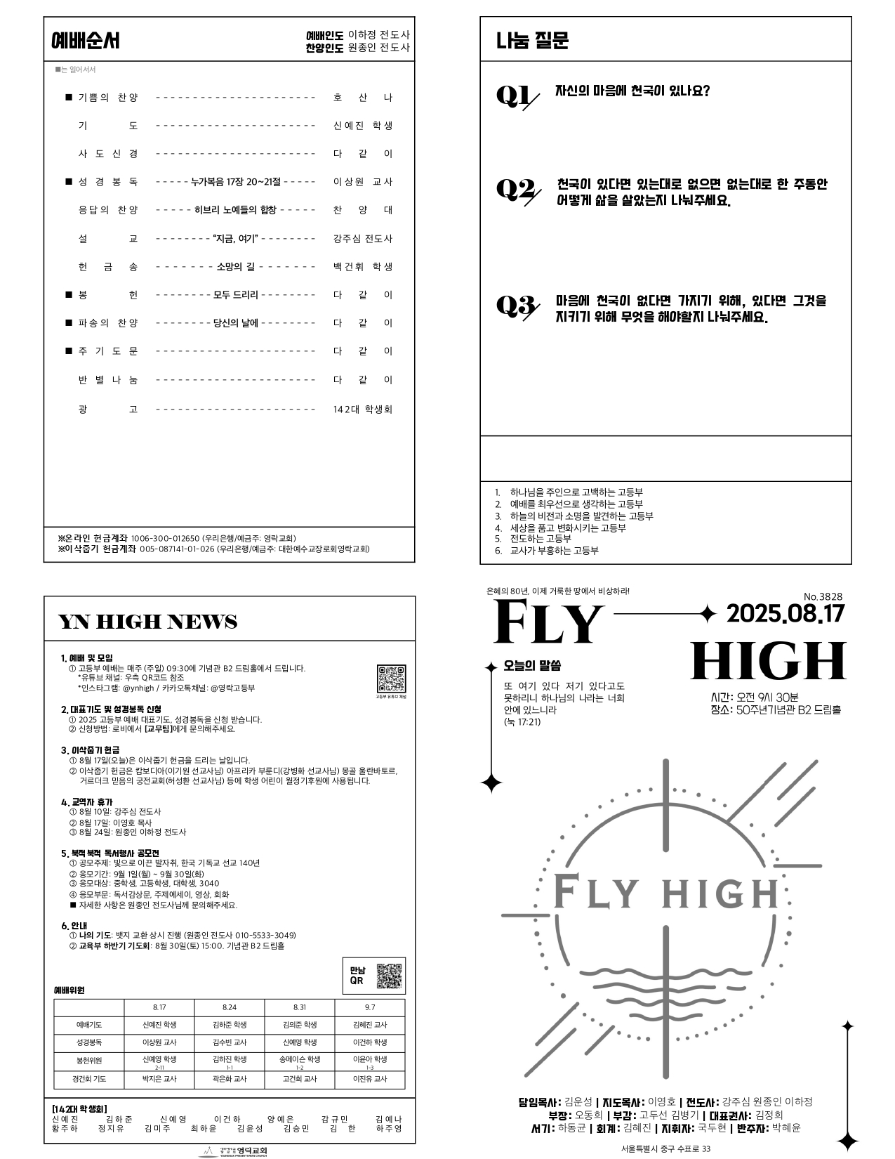 [고등부] 8월 17일 주보
