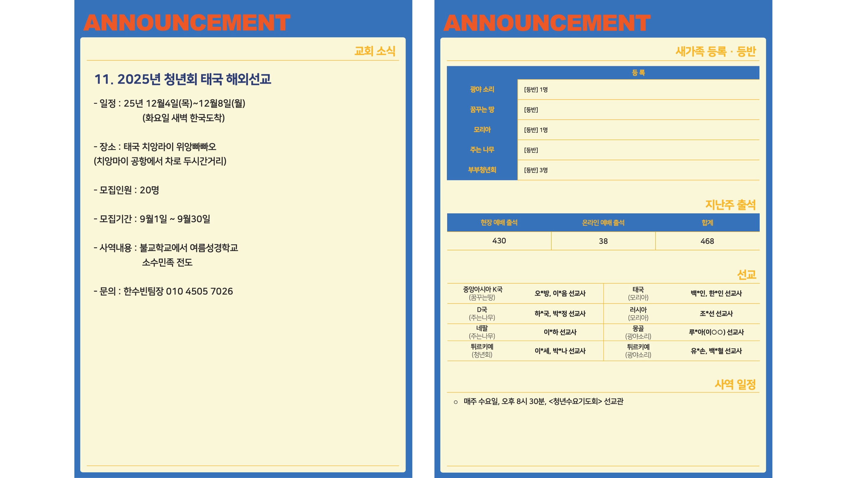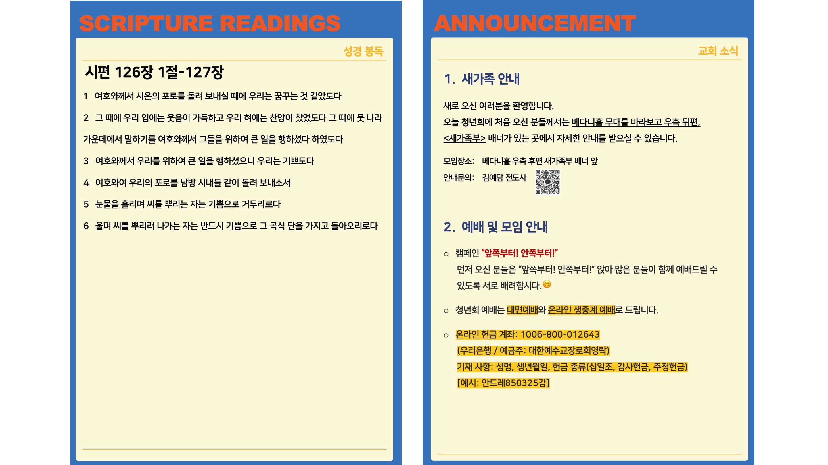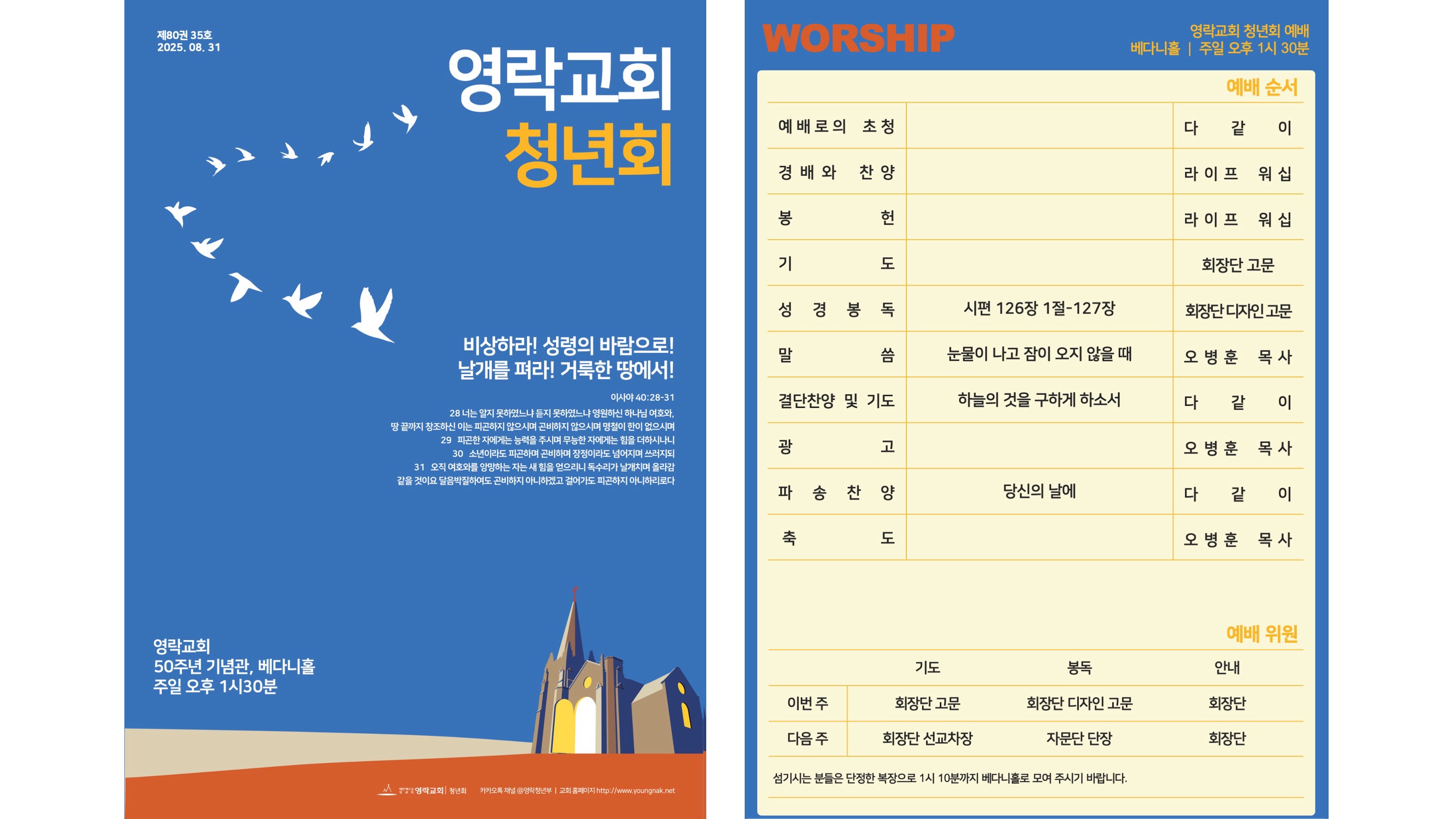 2025년 8월 31일 청년회 예배는 "현장예배"와 "온라인 생중계"로 병행하여 드려지게 됩니다.