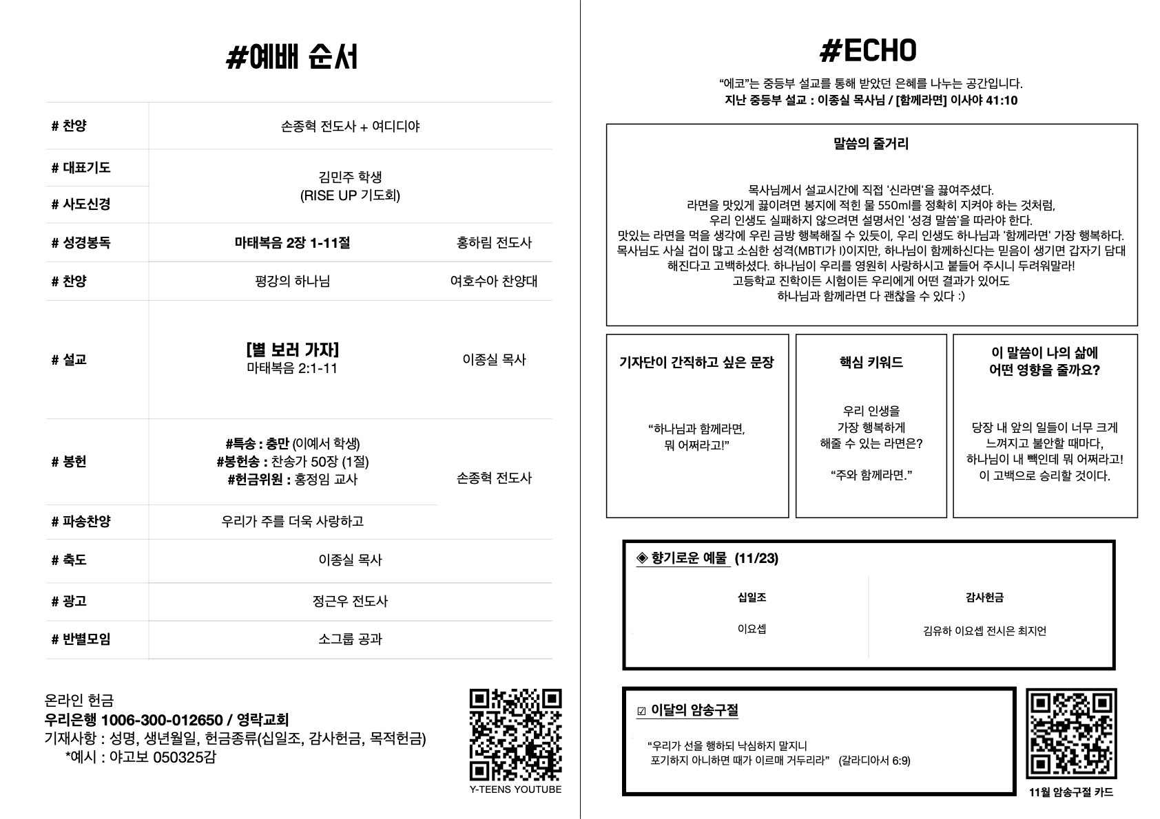 [중등부] 11월 20일 주보
