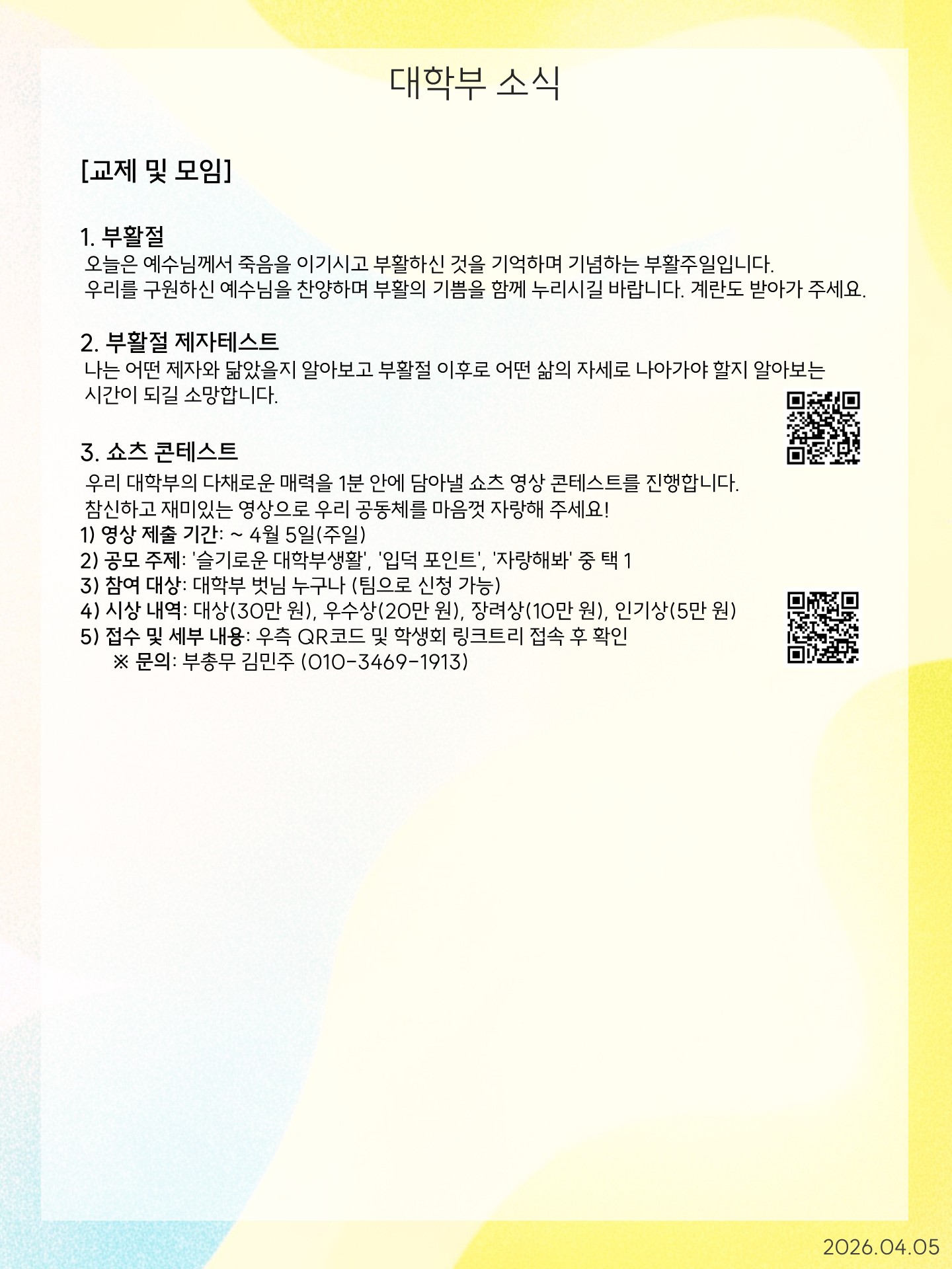 [대학부] 4월 5일 주보