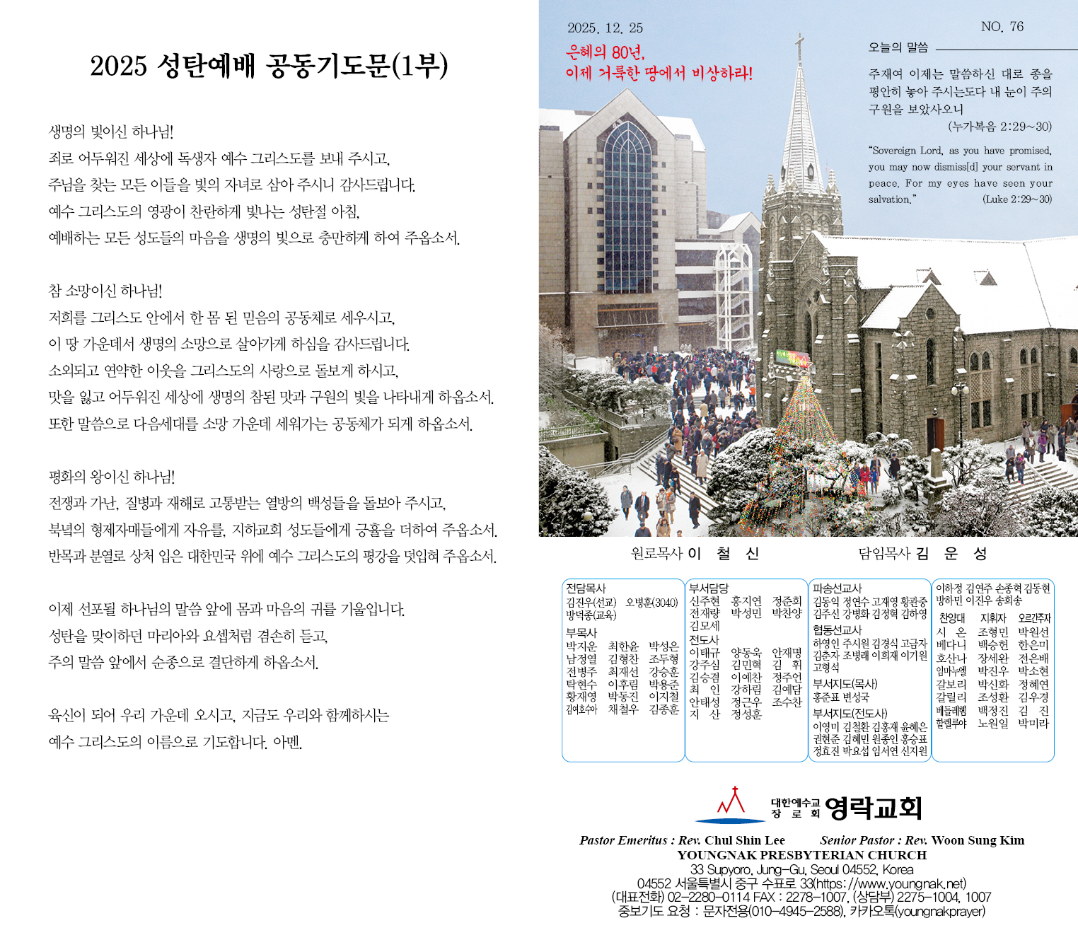 2025년 12월 25일 성탄축하예배